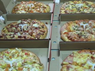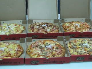 Pizza Dinner. Total of 6 pizzas for around 10 people. Super delicious. Yum! Love it lots! (: